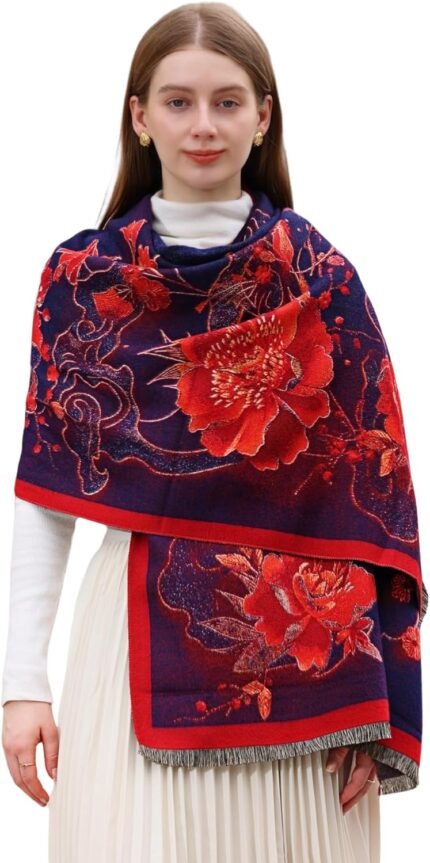 vimate Silky Paisley Pashmina Shawl Scarf-Women’s Soft Double-side Jacquard Pashminas Wrap for Evening Dress Travel Shawl