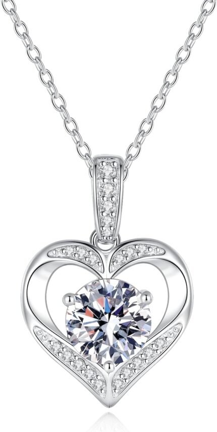 Moissanite Pendants for Women,1-3 CT Heart Moissanite Jewel Pendants Gift for Women Wife Mom Her,S925 Sterling Silver Jewel Moissanite Pendants for Anniversary Birthday Wedding Christmas Valentines