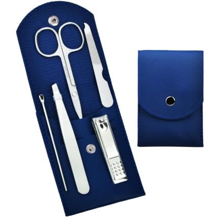 Travel Manicure Set Professional Nail Clipper Kit-5 Pieces Stainless Steel Manicure Kit, Women Men Grooming kit With Nail Care Tools Beauty Scissors Tweezers (Silver Blue)
