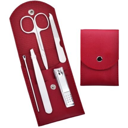 Travel Manicure Set Professional Nail Clipper Kit-5 Pieces Stainless Steel Manicure Kit, Women Men Grooming kit With Nail Care Tools Beauty Scissors Tweezers (Silver Red)