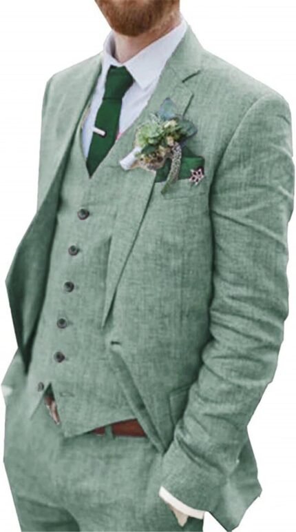 Wehilion Retro Linen Men Suit Beach Wedding Suit Summer Slim Fit 3 Pieces Light Weight Linen Suit Jacket Vest Pant Tuxedo