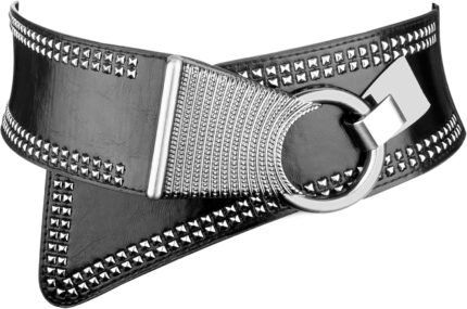 Womens Studded Belt Elastic Wide Punk Chunky Waistband for 80s Retro Dresses