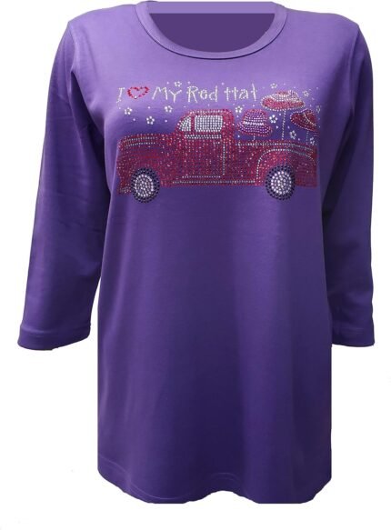 Red Hat Society Lady Bling Rhinestone Pickup Truck Women’s Shirt Purple Red Hats with Charming Design