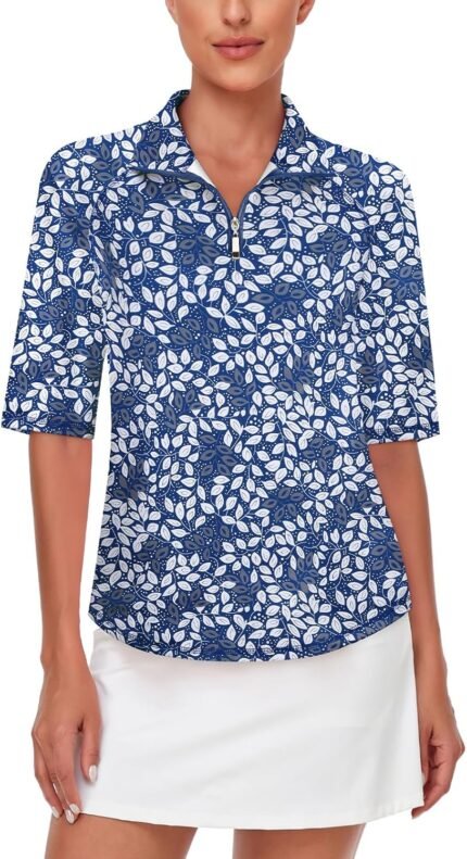 Misyula Womens Golf Shirt Quick Dry Half Sleeve Quarter Zip Polo Workout Tops Tennis Shirts M-3XL