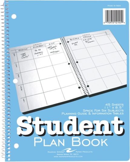 Roaring Spring Student Plan Book, 40-Weeks: Six-Subject Day, Blue/White Cover, (100) 11 x 8.5 Sheets