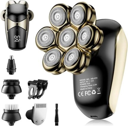 Detachable Head Shavers, SHPAVVER 5 in 1 Electric Razor IPX7 Waterproof for Bald Men, Wet Dry LED Display Rechargeable 7D Rotary Shaver Grooming Kit with Type C Charge A