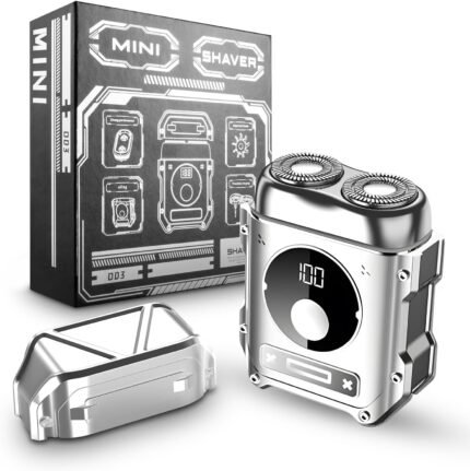 Electric Razor for Men, All Metal Body, Magnetic Shaving Head, Powerful motors, Sharp blades, Full Body Washing, Type-C Quick Charging, LED Display, Mini Cordless Rotary Shaver, Easy to travel, Silver