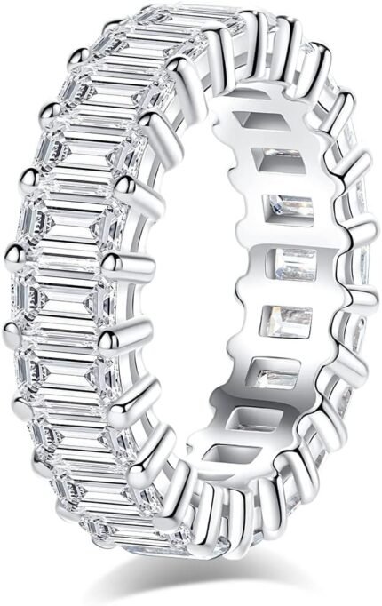 AnuClub Moissanite Eternity Ring, Round/Emerald/Princess Cut 5cttw D Color 925 Sterling Silver Wedding Band Rings for Women