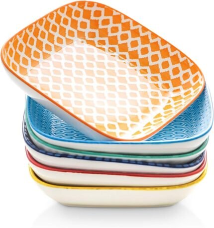 Selamica Porcelain 8-inch Square Dinner Plates, Salad Pasta Bowls, Set of 6, Assorted Colors