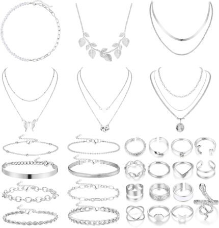 Sanfenly Gold Jewelry Sets for Women Gold Layered Necklaces Chain Bracelets Knuckle Rings Gold Jewelry for Valentine Anniversary Birthday Gift