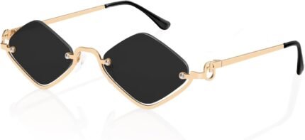 TYA Retro Y2k Sunglasses for Women Men,Trendy Semi-Rimless Sun Glasses Irregular Narrow Gold Sunnies UV400