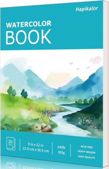 Hapikalor Watercolor Paper Pad, 9″x12″ Water Color Paper, 140lb/300gsm Artist Painting Drawing Paper Book, Art Supplies for Adults Kids, Watercolors, Watercolor Paint Set, Sketchbook, Journal, Teal