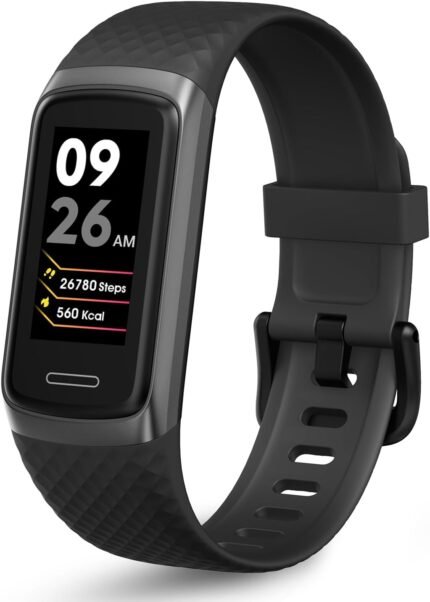 OCTANDRA Active 2 VeryFit Fitness Tracker Heart Rate SpO2 Blood Oxygen Saturation Sleep Monitor Step Counter Pedometer IP68 Waterproof Activity Running Smart Watches for Men Women (ID155) (Black)