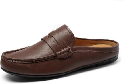 Men’s Slip-On Loafers Handmade Leather Slippers Breathable Comfortable Soft Hand Stitched no-Heel Casual Shoes for Men