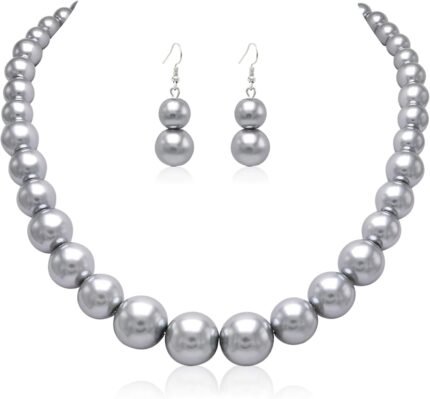 Pearl Choker Necklace for Women Faux Pearl Beads Strand Necklace Earring Set Costume Jewelry