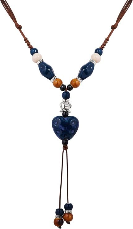 MINACHI Boho Hippie Colorful Ceramic Heart Bead Strand Necklace, Bohemian Summer Statement Jewelry Gift for Women