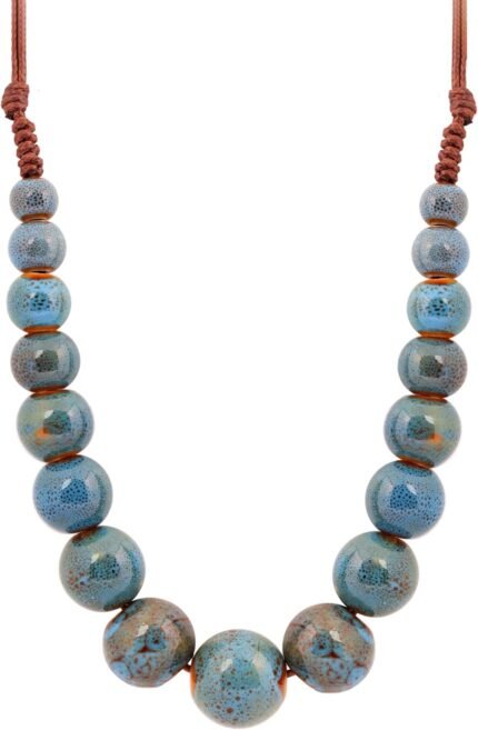 MINACHI Hippie Boho Colorful Ceramic Round Beads Strand Necklace, Bohemian Fashion Statement Jewelry Gift for Women