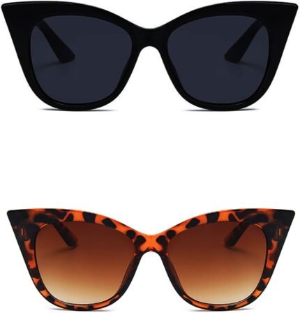 2 Pack Vintage Oversized Cateye Sunglasses for Womens Mens,UV400 Protection, Fashion Eyewear for Women Men Sunnies