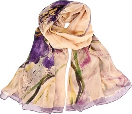 Floral-Print-Scarf for Womens – Classic-Chiffon-Wrap-Shawl Long Lightweight Sunscreen Scarf(19.6”×63”)