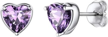 Suplight Dainty 925 Sterling Silver Birthstone Heart Crystal Necklace/Stud Earrings, Minimalist BirthStone Necklaces Earrings Jewelry for Women (with Gift Box)