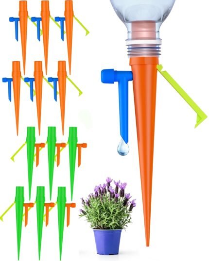New Self Watering Spikes, Automatic Watering System with Slow Release Control Valve Switch, Ideal for Outdoor Plants, Garden, Travel and Busy People (12, Orange)
