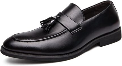 Men’s Genuine Leather Slip On Tassels Loafers Classic Casual Dress Penny Loafers Vintage Formal Business Wedding Smoking Shoes