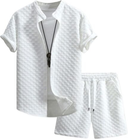 GORGLITTER Men’s Vacation Sets Short Sleeve Button Down Shirt and Textured Short Set