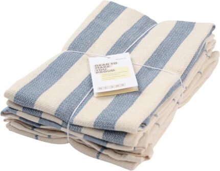 MEEMA Kitchen Towels Set of 4 – Super Absorbent Cotton Kitchen Hand Towels, Reusable Dish Rags, Quick Drying Kitchen Towel Set Best for Cooking, Cleaning, and Drying Hands – Minimal Blue, 18×28 Inch