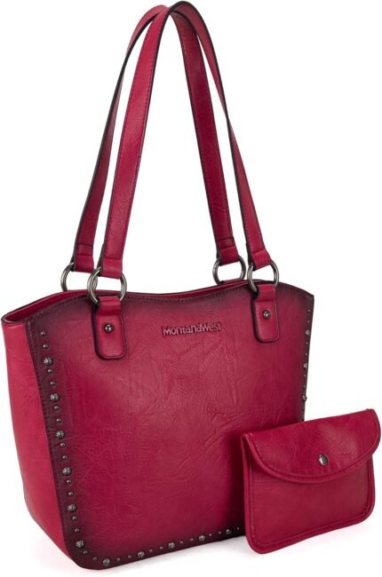 Montana West Western Studded Tote Bag for Women Two-Tone Vintage Purse and Wallet Set