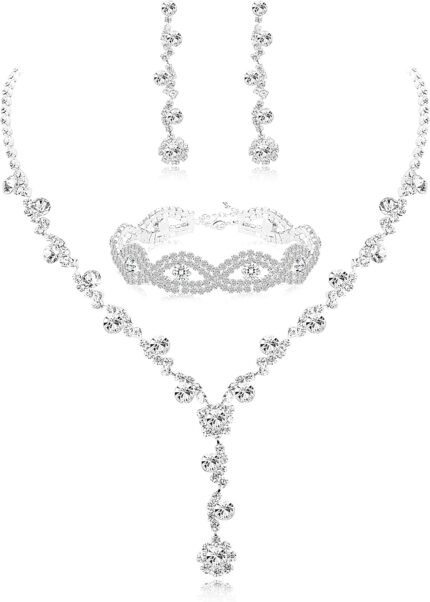 Udalyn Rhinestone Bridesmaid Jewelry Sets for Women Necklace and Earring Set for Wedding with Crystal Bracelet