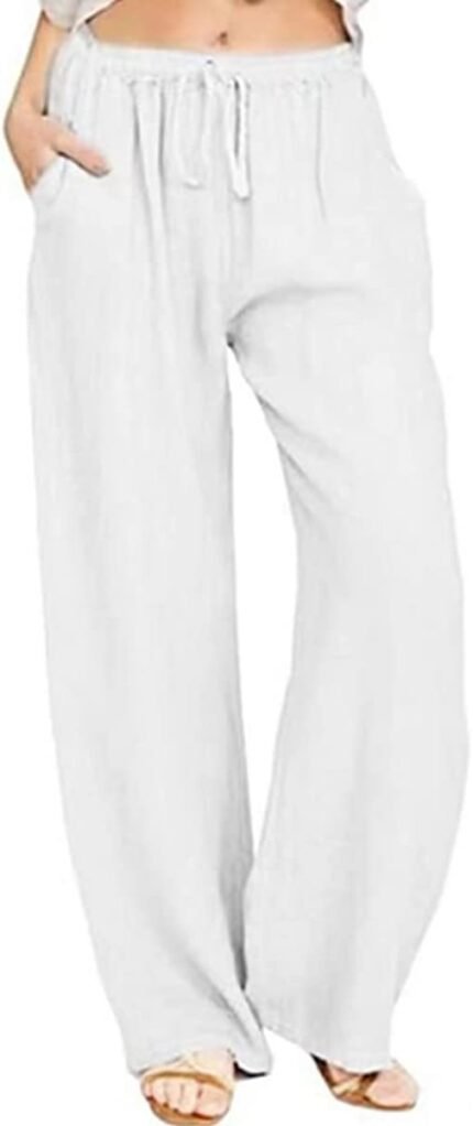 utcoco Women’s Cotton Linen Drawstring High Waisted Pants Casual Loose Fit Wide Leg Trousers