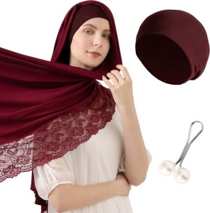Viscose & Cotton Hijab Scarf Set for Muslim Women – Undercap & Safety Hijab Pin – Soft, Stylish & Comfortable