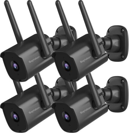 Septekon 2K Home Security Cameras 4 Pack, 2.4G Wired WiFi Security Camera Outdoor with Night Vision, Two-Way Audio, IP66, Motion Detection Alarm, Dual Antenna, Black