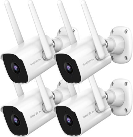 Septekon 2K Home Security Cameras, 4 Pack Wired WiFi Outdoor Security Cameras with Night Vision, Two-Way Audio, 2.4G WiFi, IP66, Motion Detection Alarm – P30
