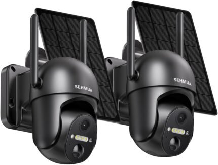 SEHMUA Solar Security Cameras Wireless Outdoor, 2K 360° View Battery Powered Outdoor Camera, WiFi Home Security with Spotlight Color Night Vision, PIR Sensor