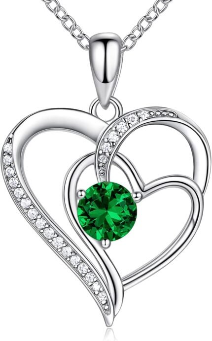 BlingGem Heart Necklaces for Women 925 Sterling Silver Birthstone Necklace for Women With 2 Birthstones Womens Jewelry Customized Pendant Necklace Gifts For Women Wife Mom