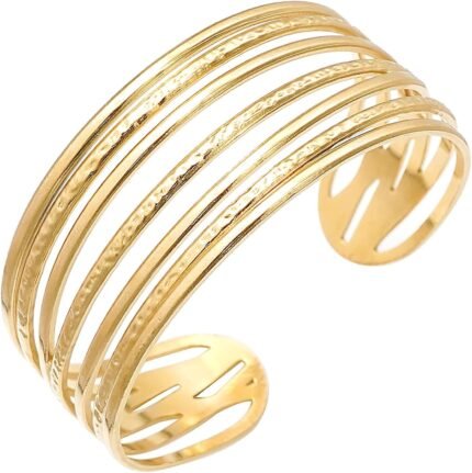 Price: (as of – Details) Description: Design: The multi-layer open bangle design of this gold cuff bracelet allows you to