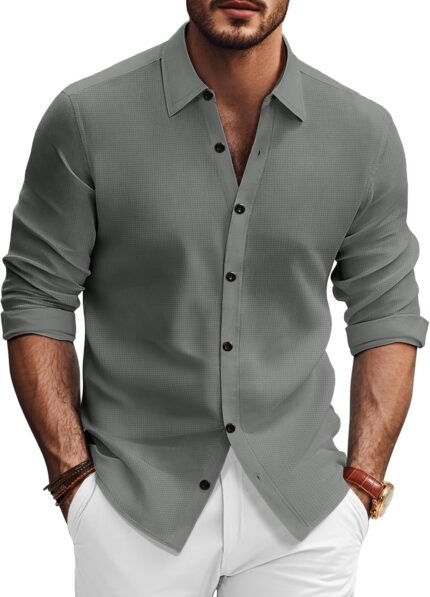 SAMERM Mens Dress Shirt Wrinkle Free Moisture Wicking 4-Way High Stretch Super Soft Casual Button Down Shirts