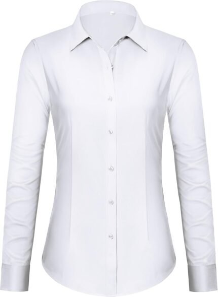 Women’s Button Down Shirts Long Sleeve Dress Shirts Collared Fitted Work Office Blouse Tops Wrinkle Free