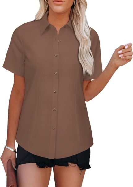 Womens Button Down Shirts Short Sleeve Fitted Button Up Dress Shirt Solid Collared Blouse Wrinkle Free Work Business Top