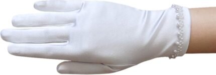 Girl’s Satin Gloves with pearl bead edging around the Wrist/White