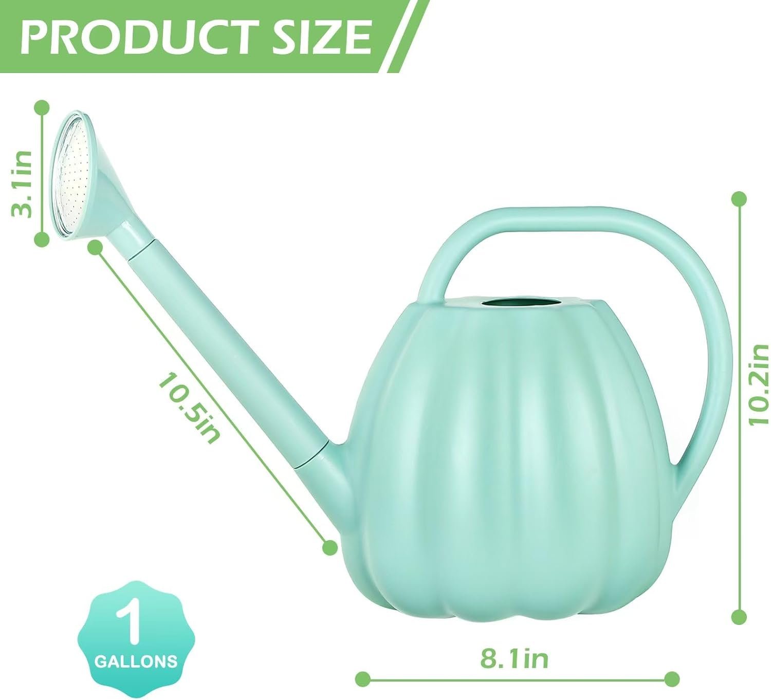 The watering can hold about 1 gallon, which can reduce the trouble of frequent watering
