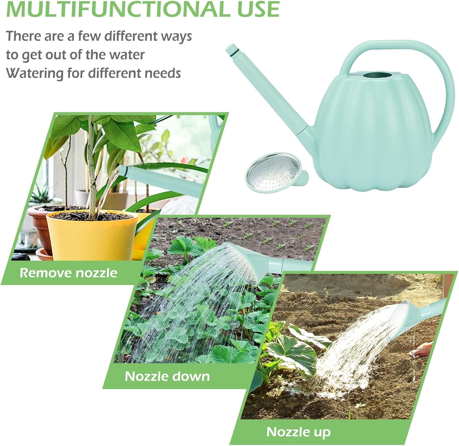UPGRADED DETACHABLE CONVERTIBLE NOZZLE: With the help of the watering can’s detachable shower nozzle