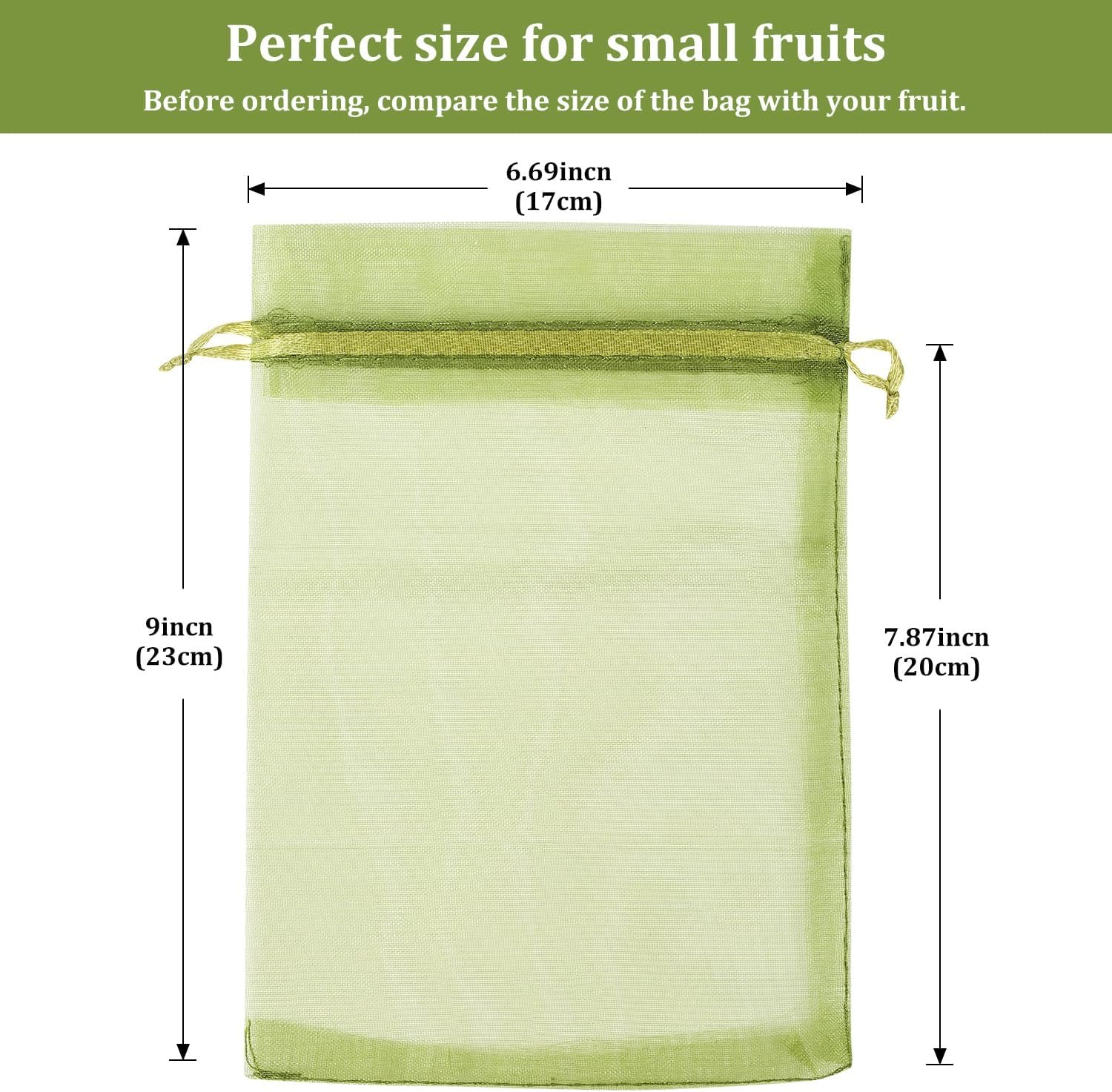 100 Pcs Fruit Protection Bags, 6x9inch Fruit Netting Bags, Green Drawstring Mesh Bags Fruit Cover Pest Barrier for Mangoes Tomatoes Fruit Trees Veggies Garden