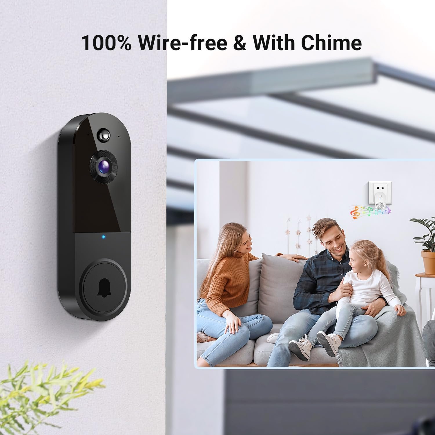 1080P Wireless Video Doorbell Camera, Night Vision, Intelligent AI Detection, Two-Way Audio, 2.4GHz Wi-Fi Support, Chime Included, Battery Powered, Cloud Storage (Sold Seperately)