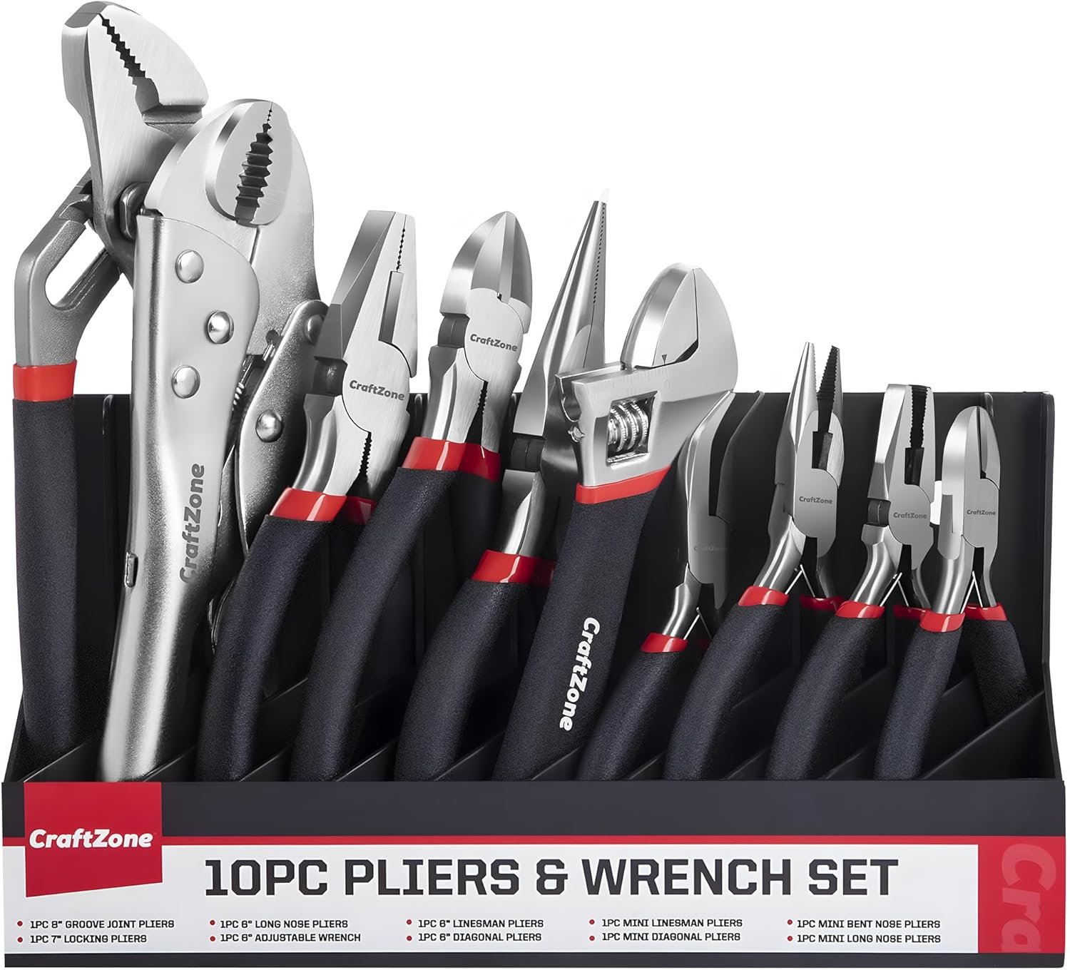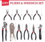 10PC Pliers&Wrench Set, Includes Locking | Long Nose | Diagonal | Groove Joint | Linesman | Mini Plier and Adjustable Wrench with Storage Rack for DIY & Home Use
