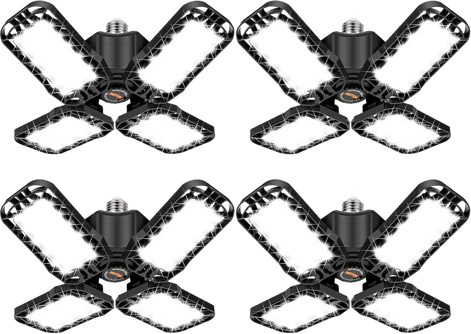 Be the first to review “120W 4-Pack Adjustable LED Garage Lights, 12000LM, E26/E27 Base, Deformable Ceiling Fixture for Garage, Workshop, Attic – Black”