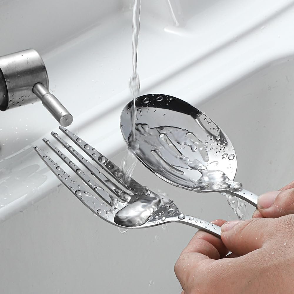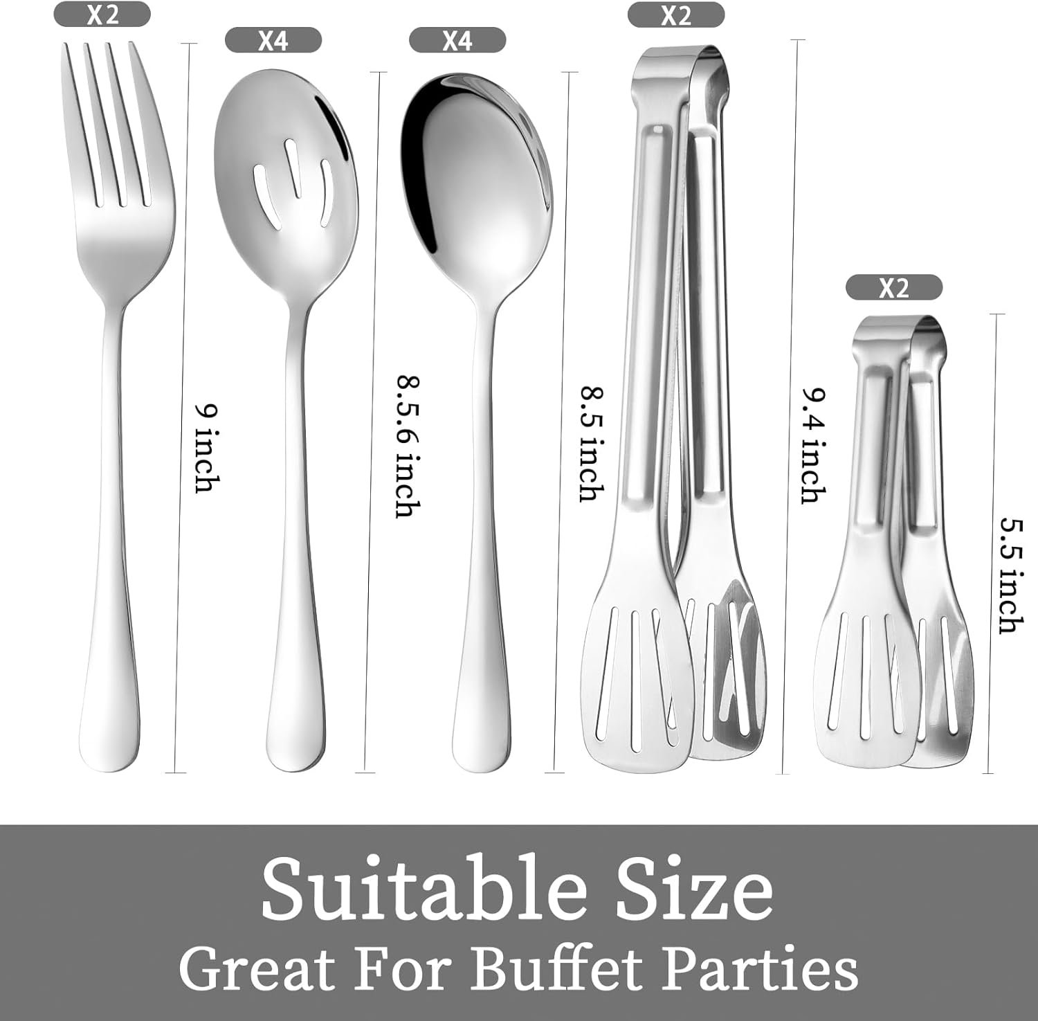 14 PCS Serving Utensils Set: Includes 4 Serving Spoons, 4 Slotted Serving Spoons, 2 Serving Forks, 4 Serving Tongs