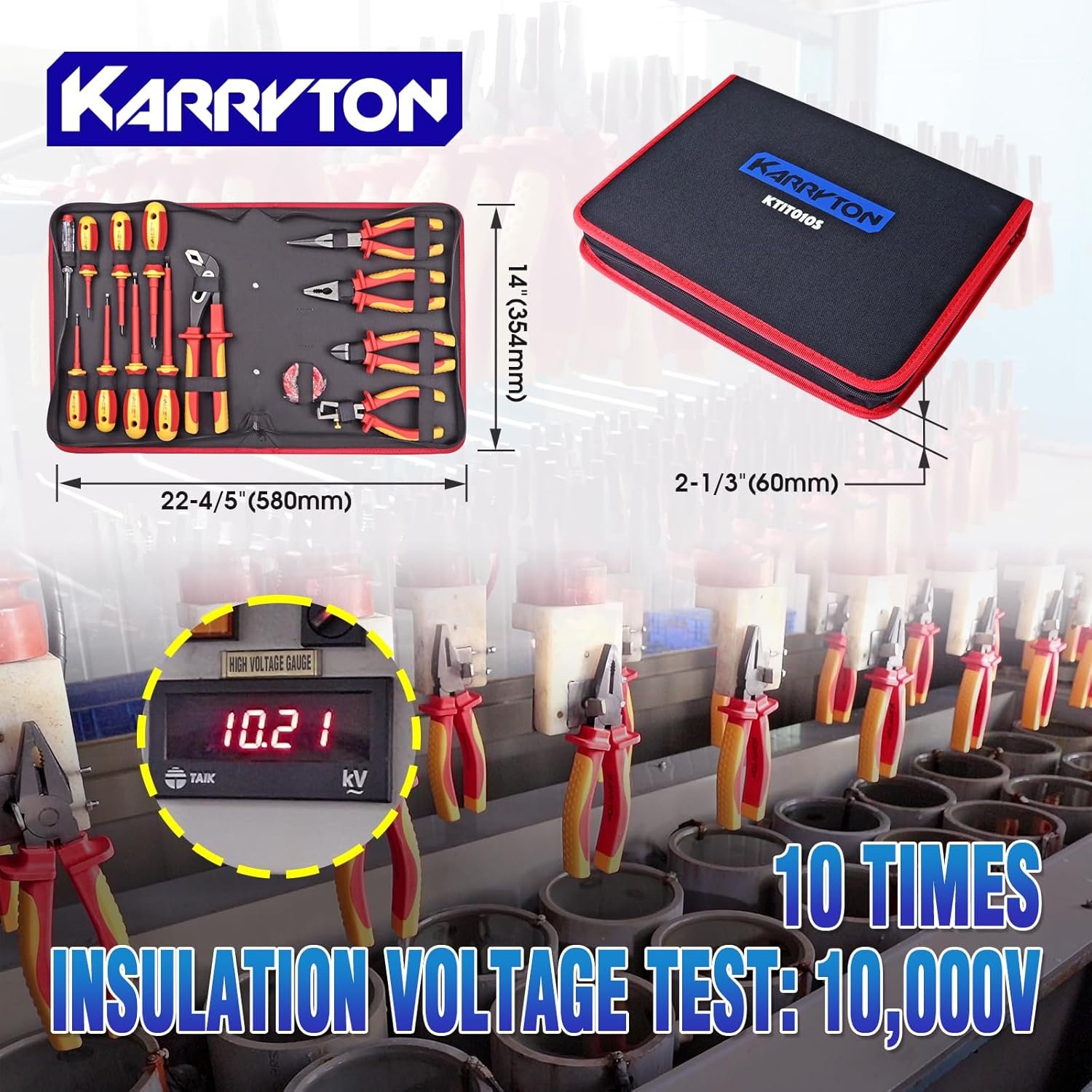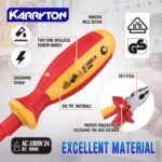 High Safety Certification & Insulation Protection : KARRYTON insulated electrician tools undergo rigorous testing to withstand up to 10,000V, ensuring 1,000V operational safety. All tools comply with VDE and IEC 60900 standards, guaranteeing safety and reliability during use. The tools are made with premium insulation materials that resist high temperatures, impact, and abrasion, offering long-lasting durability and protection against electrical hazards.