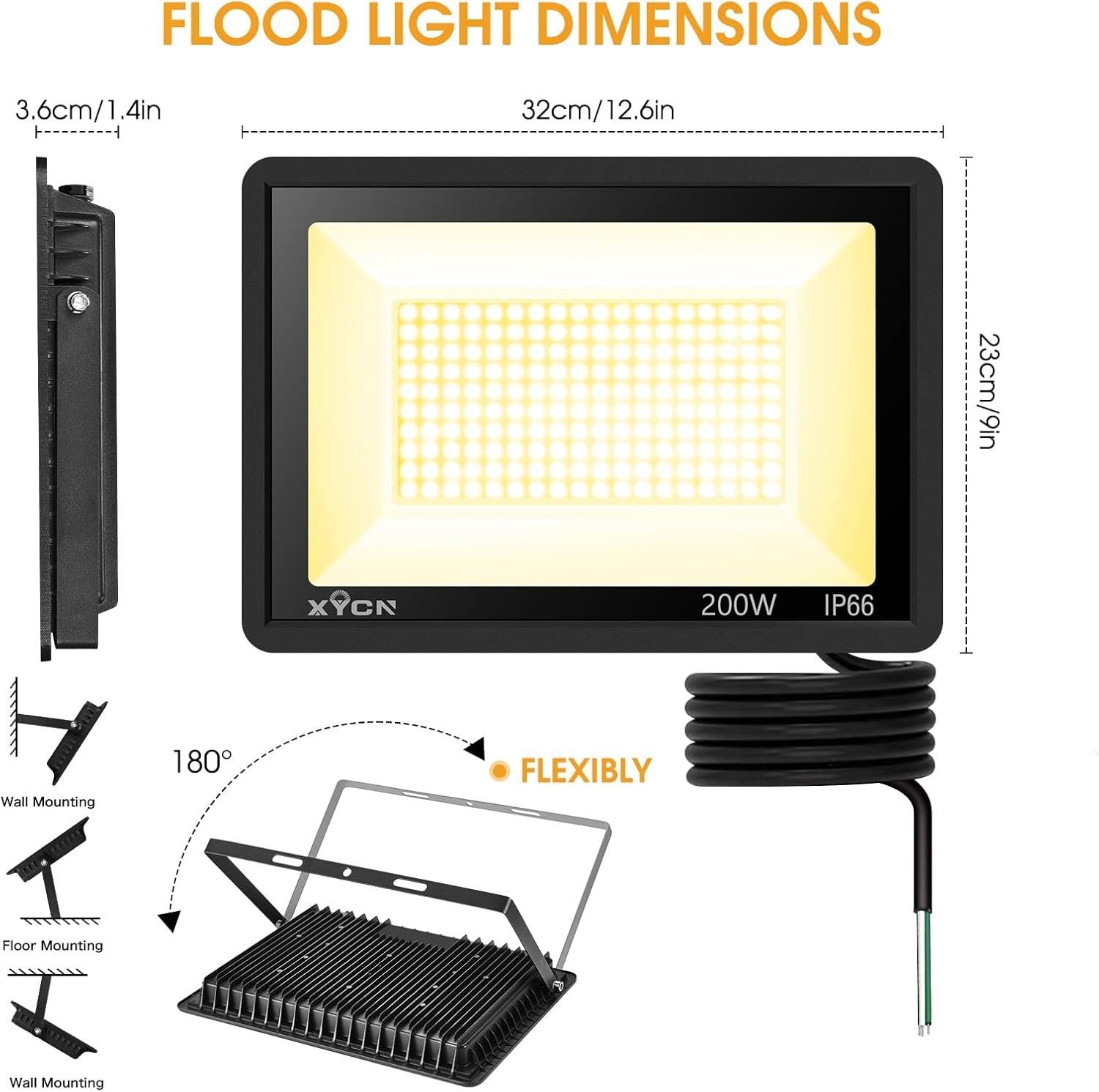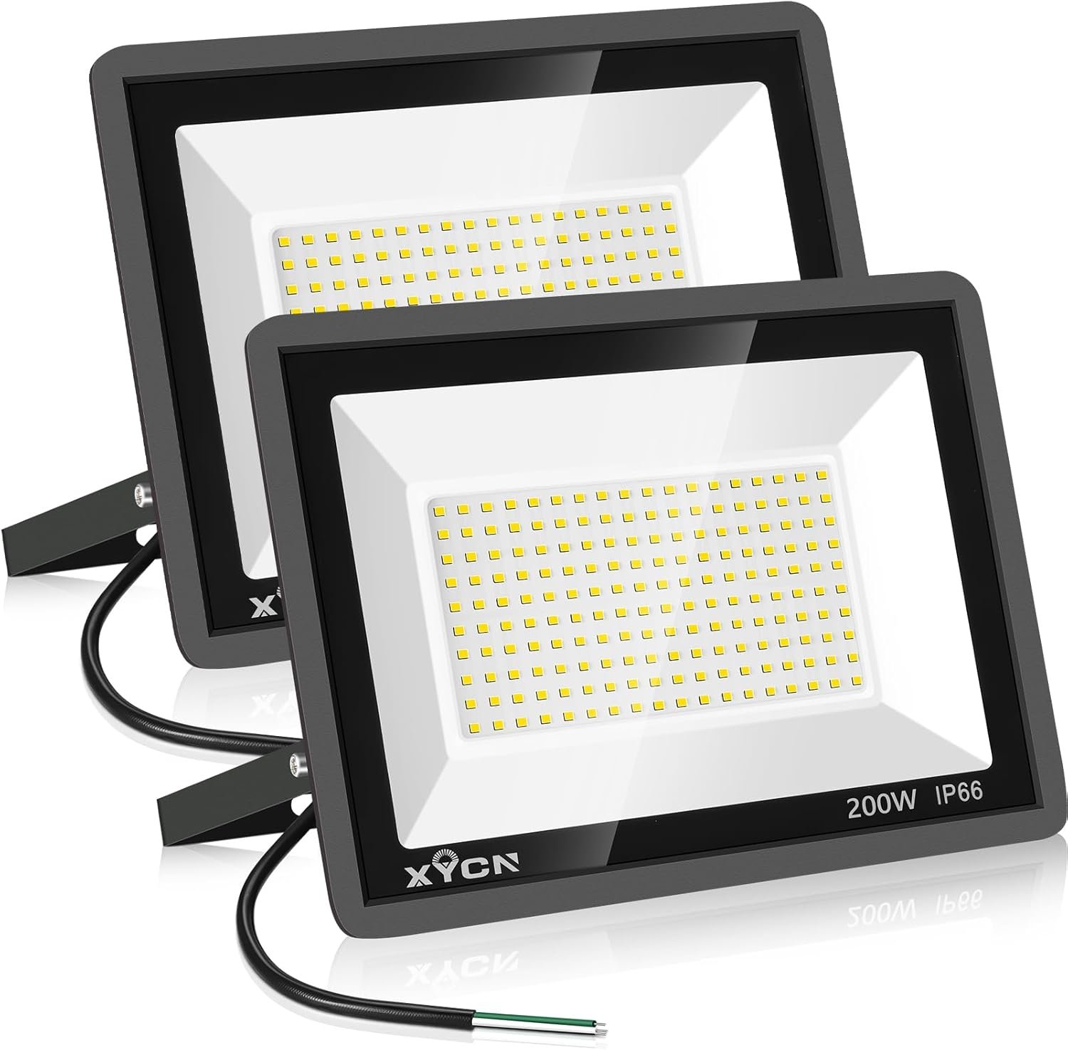 2 Pack 200W 3000K Warm White LED Flood Light,Outside Flood Light,No Plug,22500LM Super Bright Outdoor Security Lights, IP66 Waterproof Floodlight for Yard,Playground,Garage, Garden, Lawn